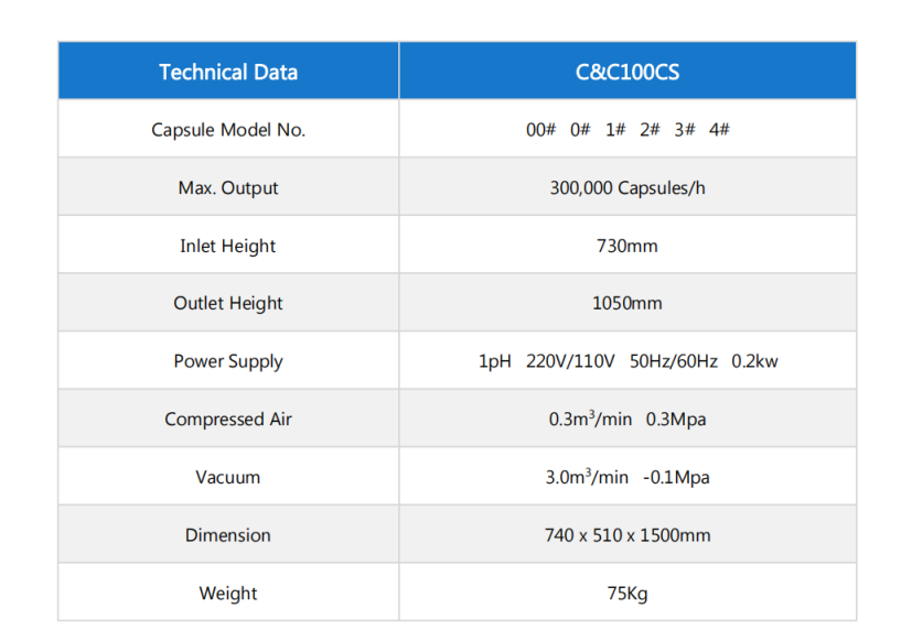 It can also automatically reject low weight capsule; loose piece and fragments of capsules. It is suitable for all sizes of capsules without the need to change parts.